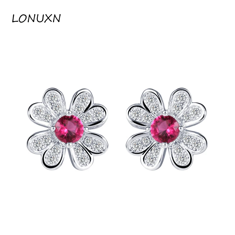 9mm 925 sterling silver stud earrings Red corundum Natural semi-precious stones red Fashion Earring