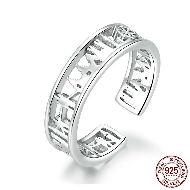 Best City Sketch Wide Finger Rings for Women Sterling Silver 925 Adjustable Rings Band Fine Jewelry Fema