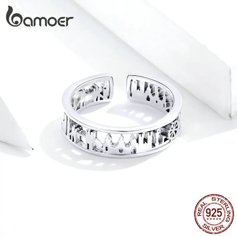 BEST City Sketch Wide Finger Rings for Women Sterling Silver 925 Adjustable Rings Band Fine Jewelry Fema