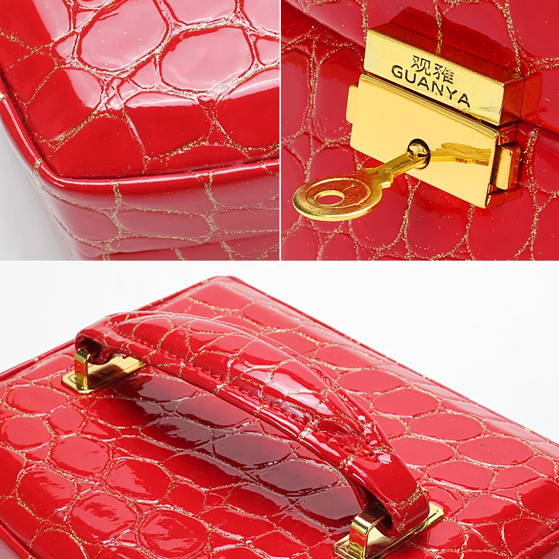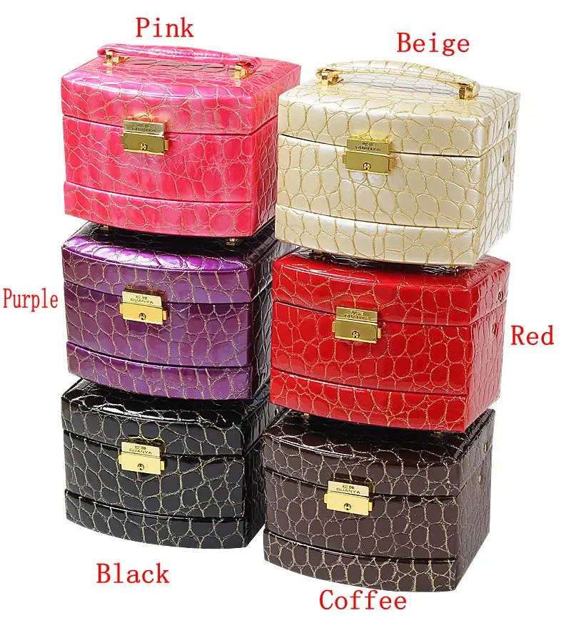 ORIGINAL Luxury PU Leather Crocodile Grain Jewelry Box 3 Layers Fashion Jewellery Storage Box Packaging Case