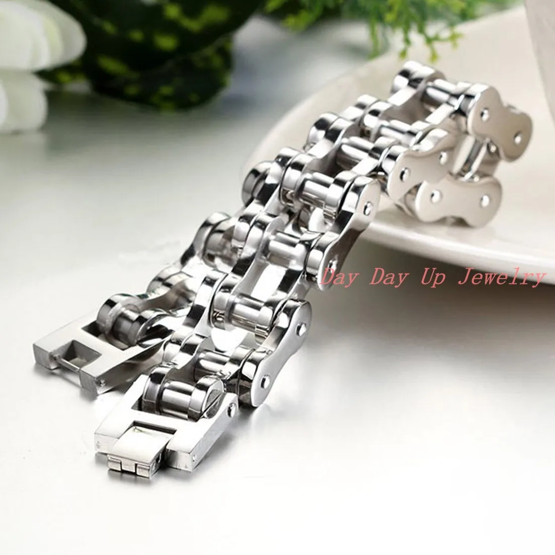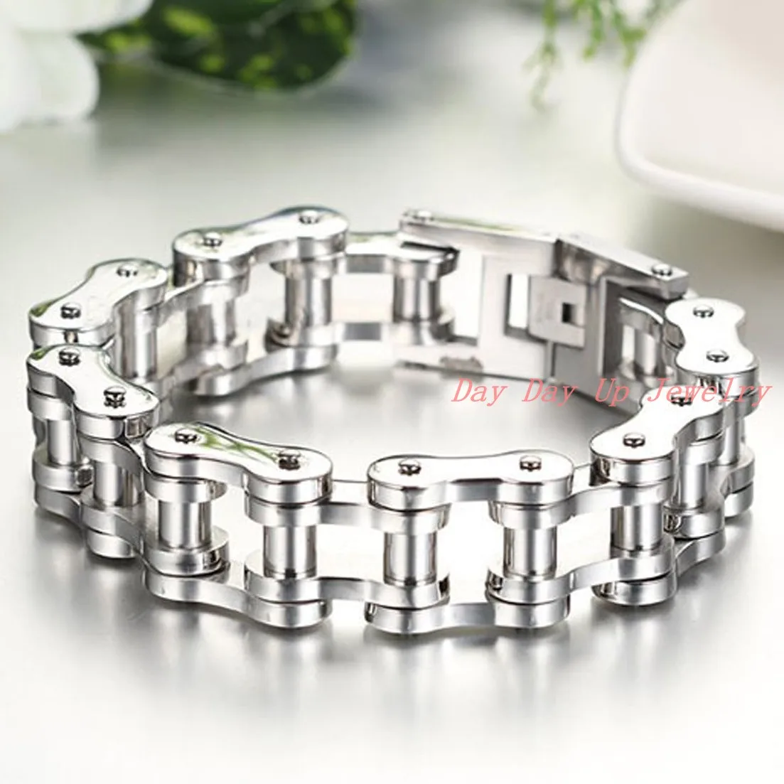 Review 9"*20mm New Polished 316L Stainless Steel Silver Bling Motorcycle Chain Men's Bracelet Bangle Top Q