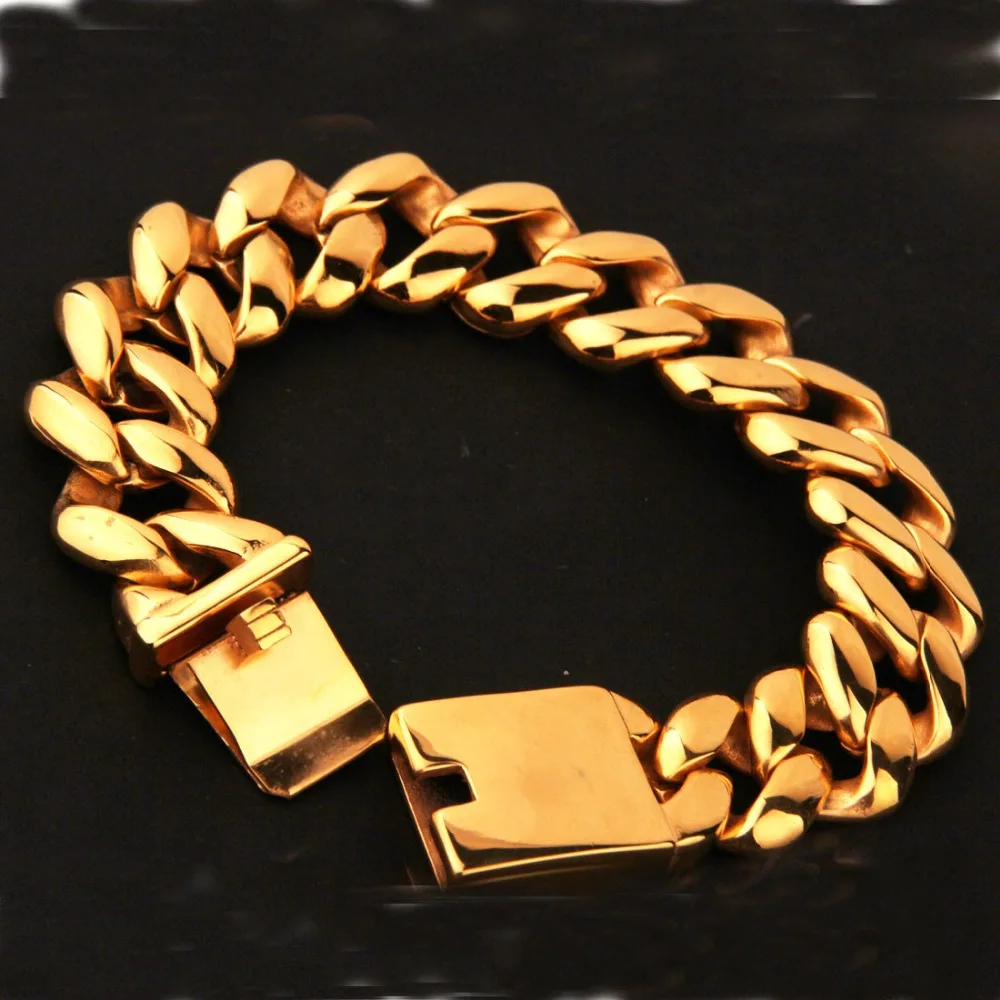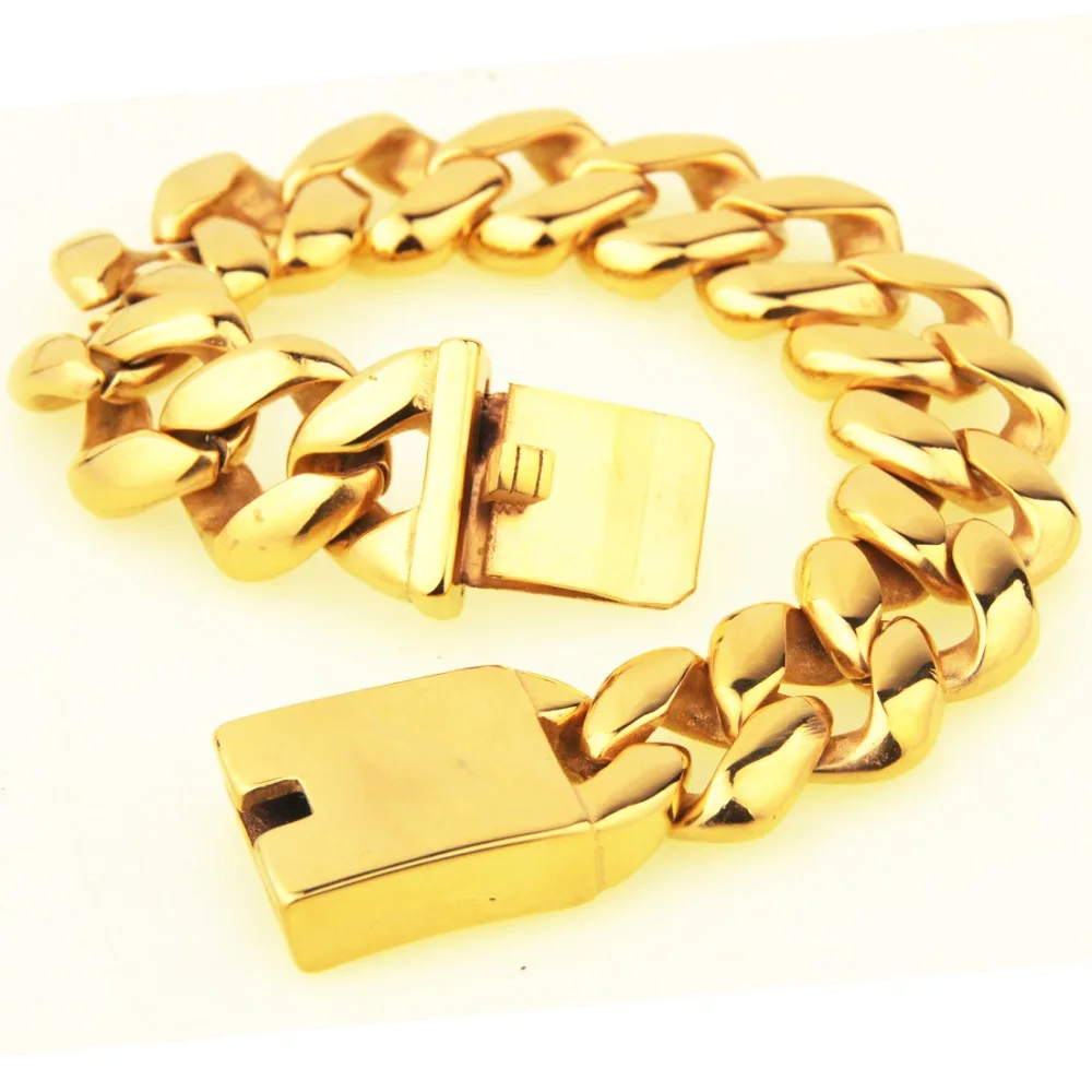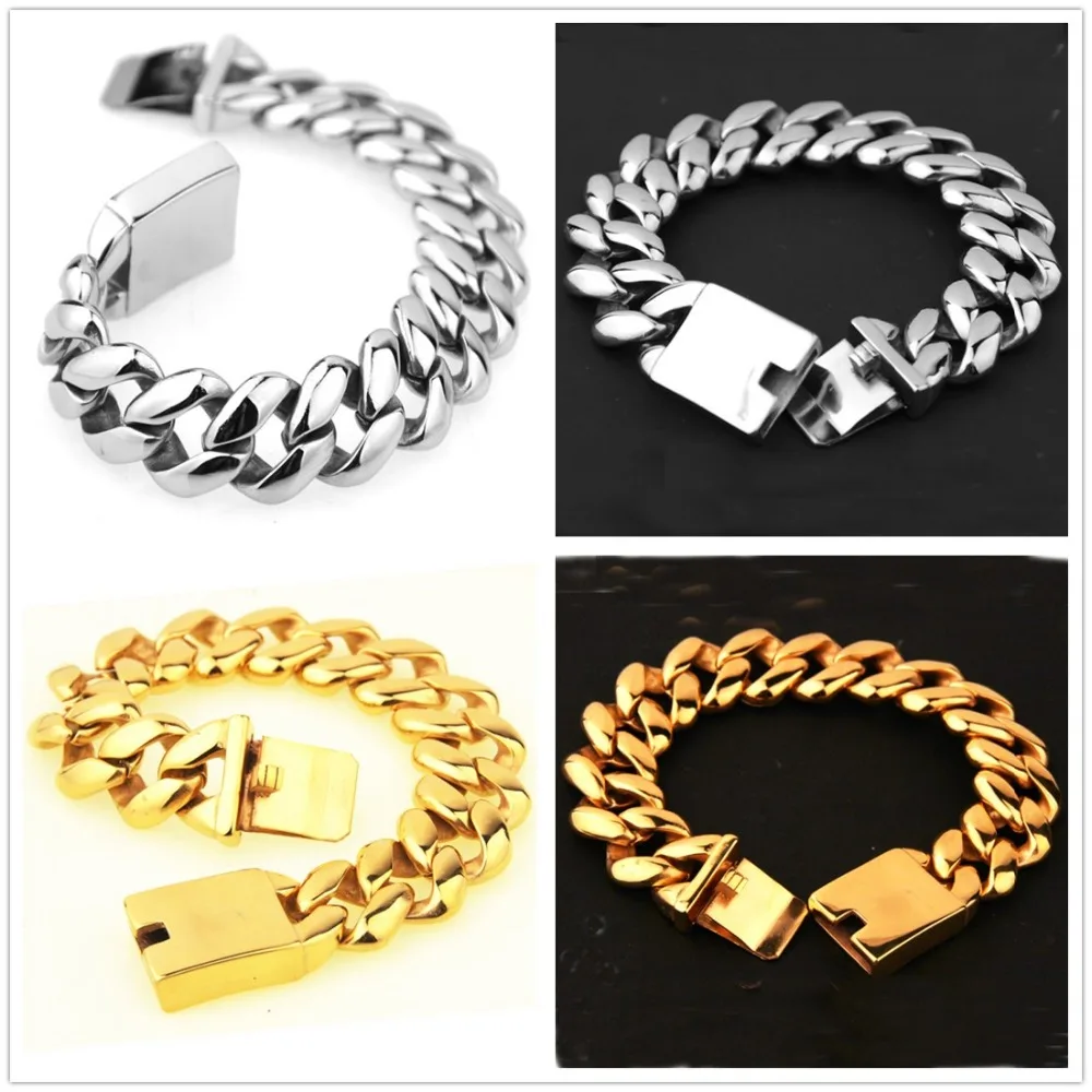 ORIGINAL 21mm Cool Jewelry Birthday Gift 316L Stainless Steel Silver Gold Tone Cuban Curb Chain Men's Boy's