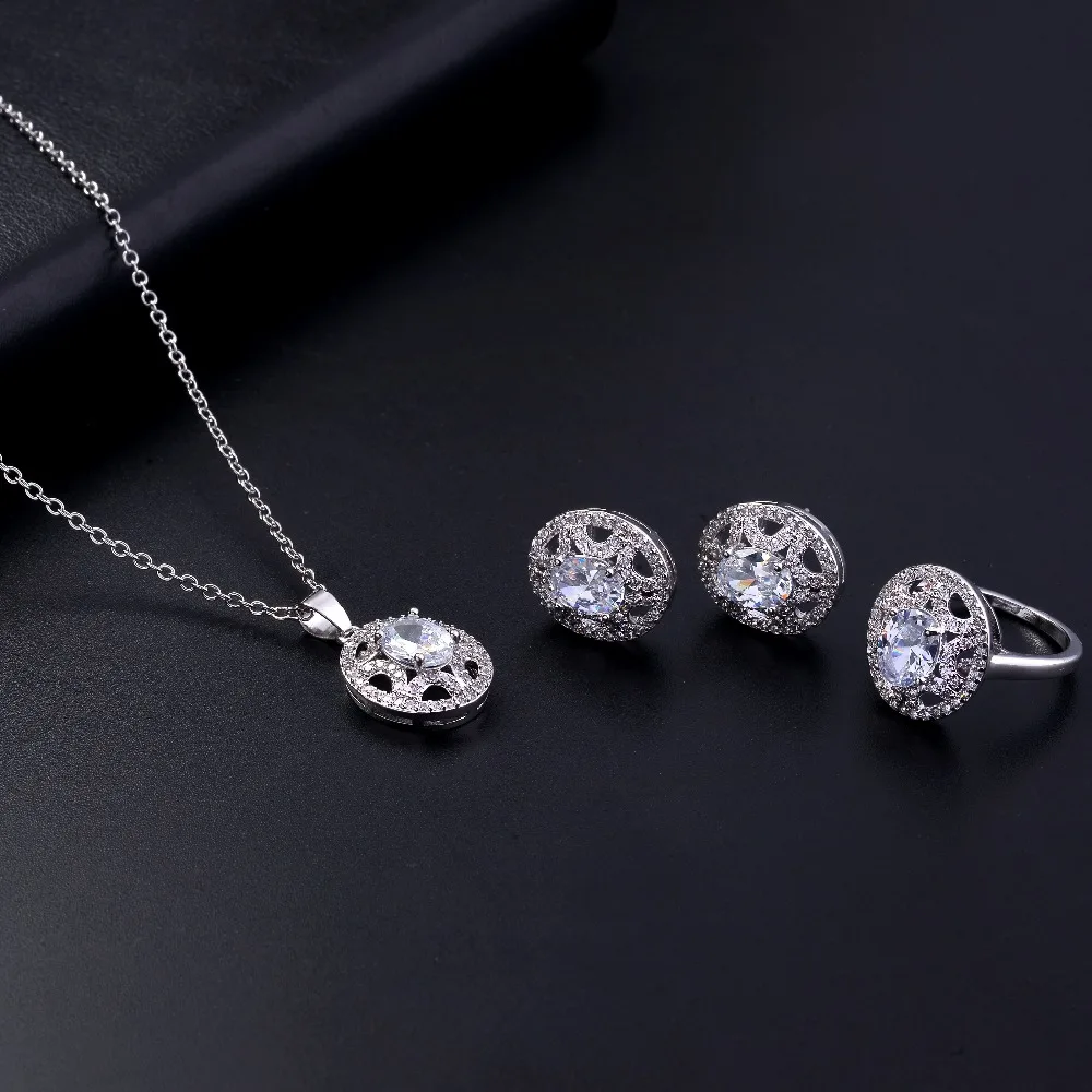 REVIEW TOP SELLER 3pcs Fashion Trendy Lady's Jewelry Sets Copper Zircon Jewelry Necklace+ Earrings+Ring #217