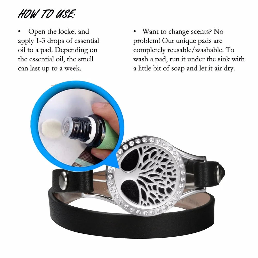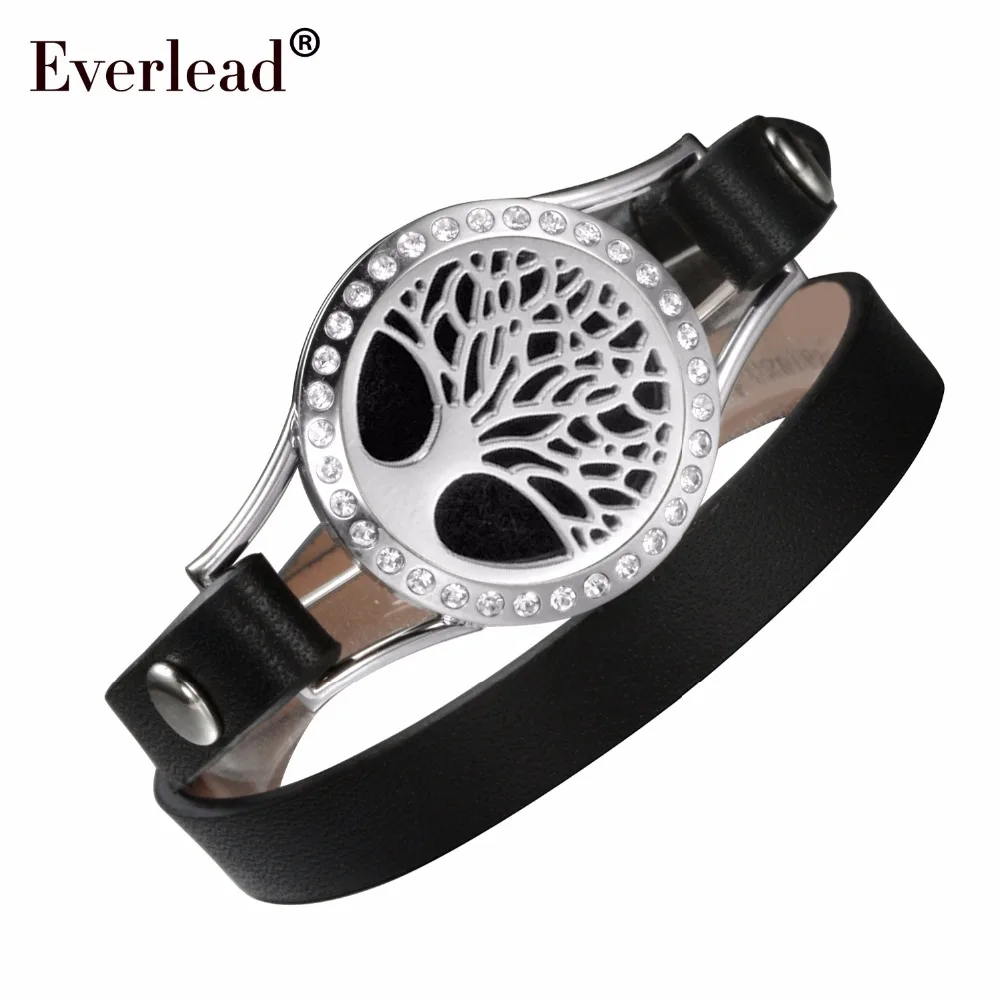 Best EVERLEAD ladies charm black leather alibaba-express women jewelry CZ silver color aromatherapy diff