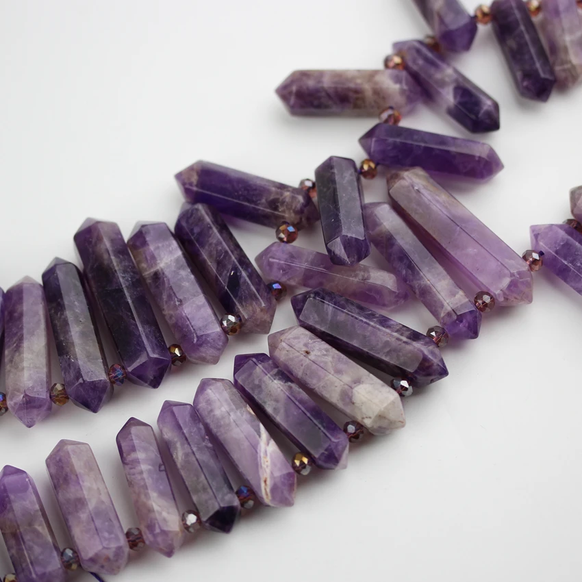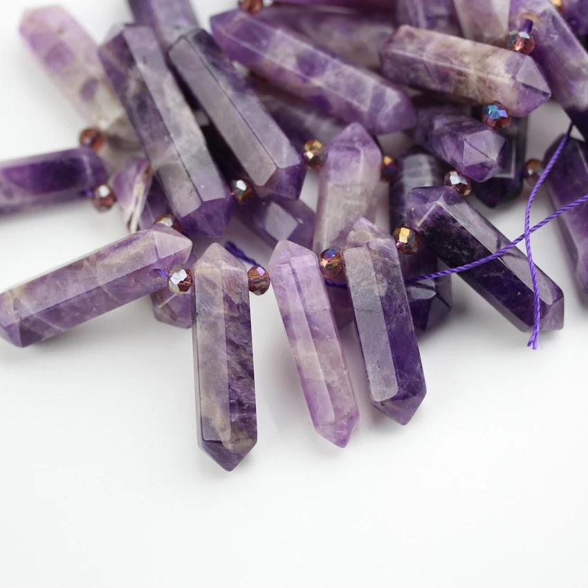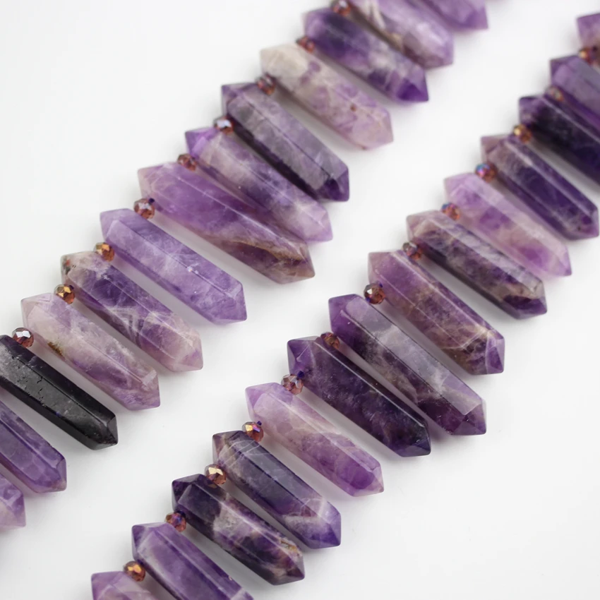 TOP Approx 23pcs/strand Amethysts Quarts Stone Pendant NecklaceCrystal Stick Point Loose Beads Strand F