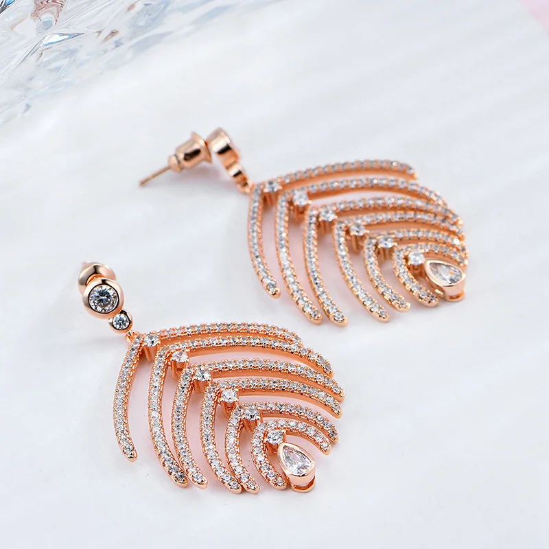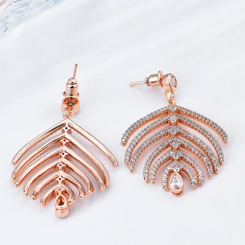 TOP NJ Rose Gold Designer Leaf Shaped Stud Earrings For Woman 2019 Fashion Ladies Earrings Engagement J